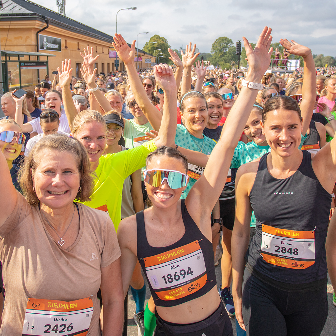 Tjejmilen är ett lopp som passar alla. Spring för fullt om du satsar på en viss tid – eller ta dig runt banan i lugn och ro. Det finns 12 olika startgrupper, du väljer grupp efter din förväntade tid. Startgrupperna stänger vartefter de blir fulla – så anmäl dig i tid. Om du inte vill finnas med på resultatlistan för Tjejmilen behöver du klicka i ”nej” på frågan i anmälan ”Vill du ha din tid i resultatlistan?”.